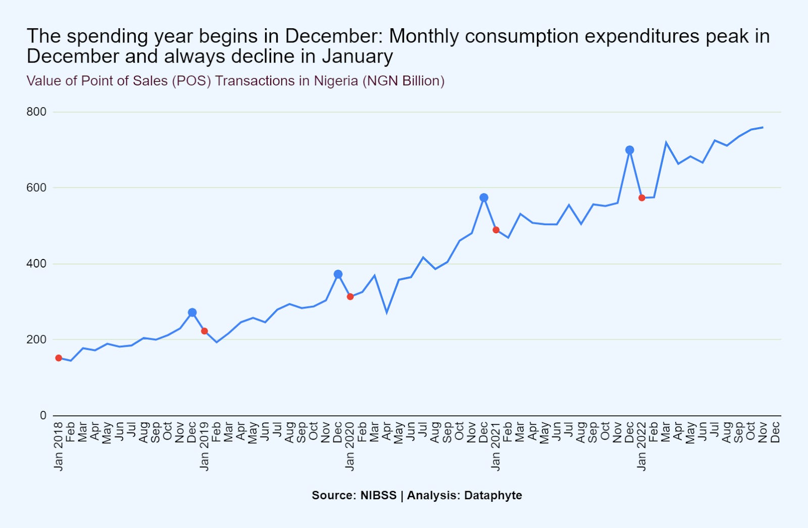 However, data on consumption expenditure, measured by the number of POS transactions in the last quarter of 2022, shows it was a hungry and hollow December for low-income earners in Nigeria.