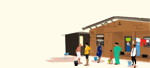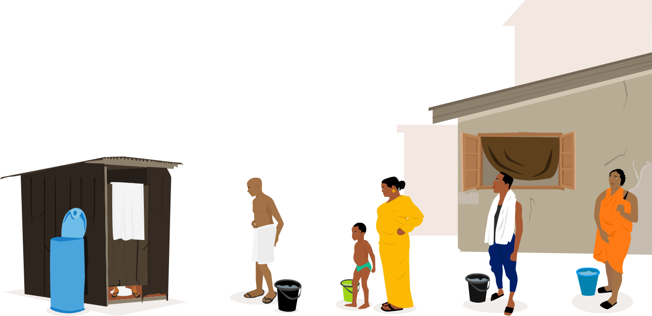 Almost 1 in 2 (46.5%) Nigerians who are multidimensionally poor are deprived of access to improved sanitation facilities. Unimproved sanitation facilities include: flush to somewhere else or unknown place (not sewer system, septic tank, or pit (latrine)); pit latrine without slab; bucket; hanging toilet or latrine; and no or other non-improved sanitation facility.