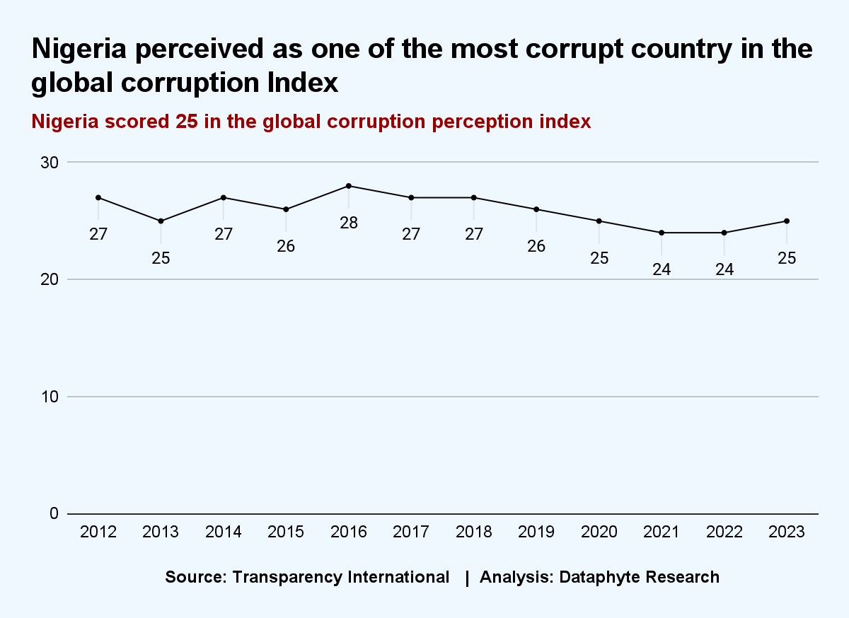 The Nigerian is perceived to be less corrupt in 2023 than they were the year before.
