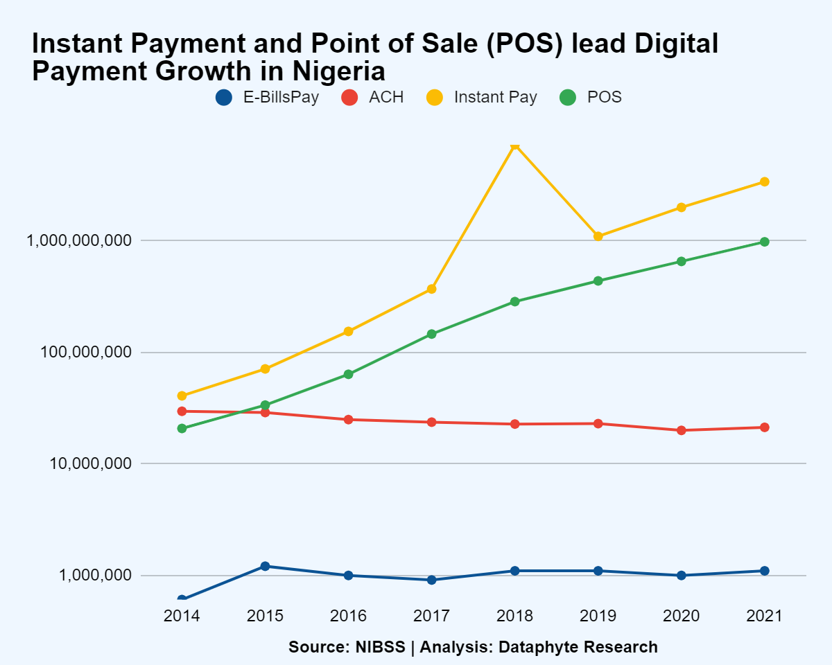 Data from Nigeria’s Nigeria Inter-Bank shows that Instant Payment and Point of Sale transactions led the digital payments growth in Nigeria.